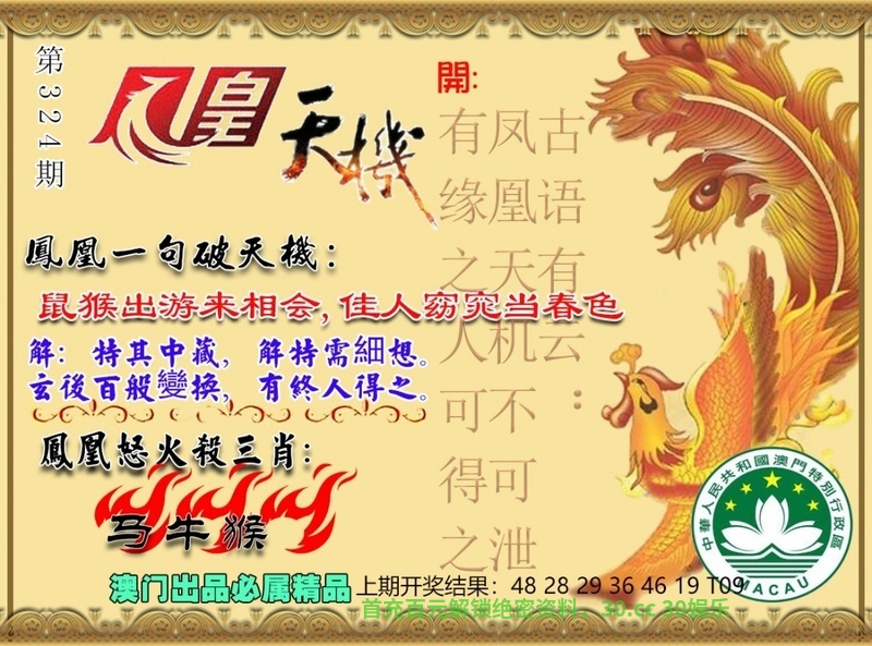 | 327期:凤凰一句破天机:四海园林春事里,一家松竹岁寒心 六肖中特:虎蛇鼠狗龙猴 四肖中特:虎蛇鼠狗 七尾中特:0124578 绝杀一肖:鸡 平特一尾:999尾 精选12码:16.28.25.37.18.30.20.32.14.26.22.34 |