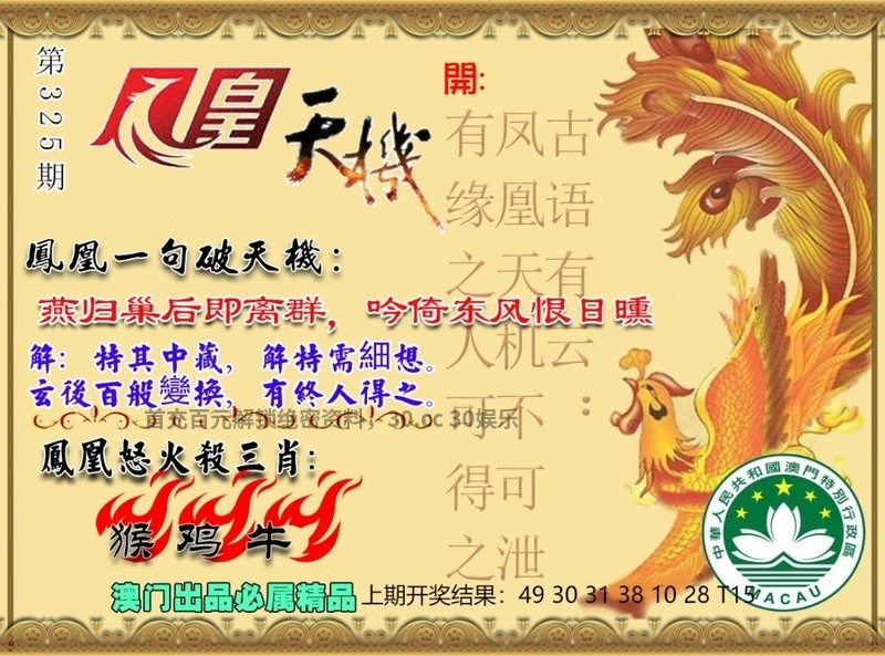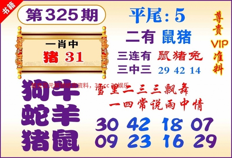 | 325期平特一尾《3333尾》开:鸡33准 |